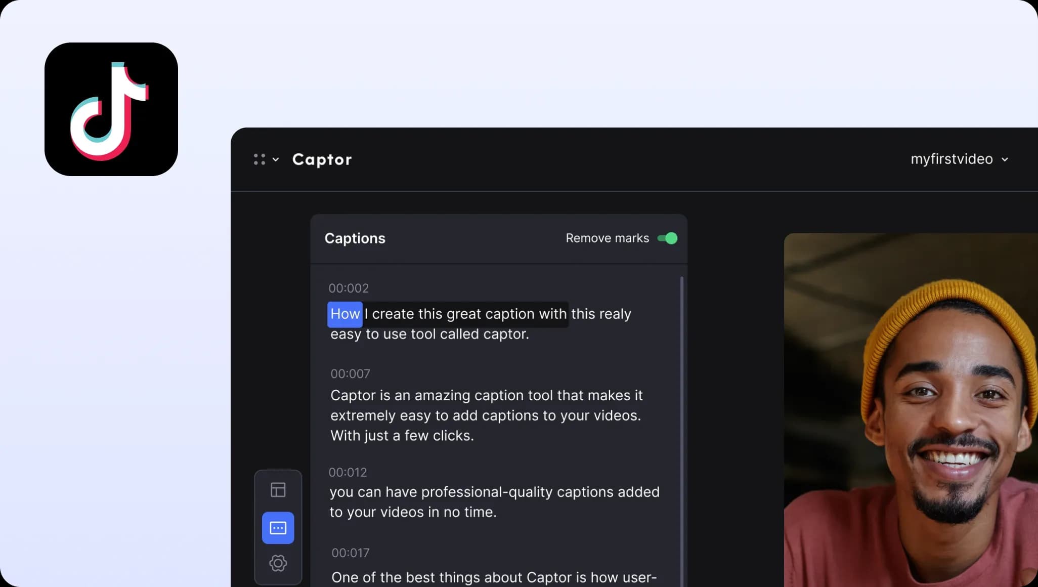 Captor is the best solution for auto-generating captions for TikTok. With its advanced artificial intelligence algorithms, user-friendly interface, cost-effectiveness, and customization options, Captor is designed to help you create captions that are engaging, relevant, and perfectly optimized for TikTok's algorithm.